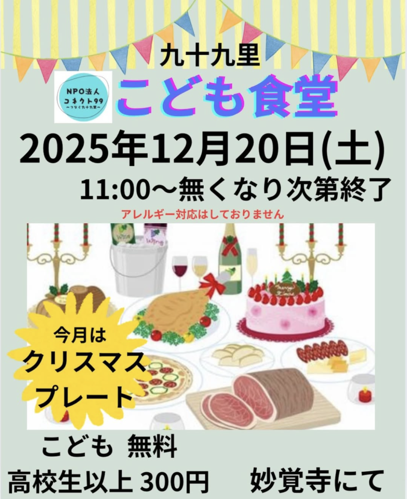 2025年12月のこども食堂は12/20(土)!メニュー「クリスマスプレート」です!