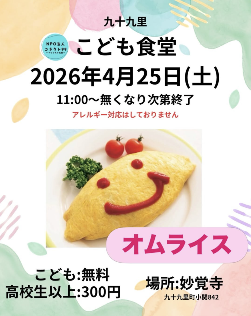 2026年4月のこども食堂は4/25(土)!メニュー「オムライス」です!